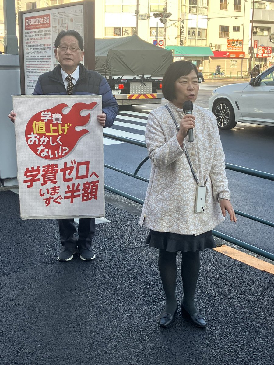 今日は雨上がりで少し暖かい朝でした。久しぶりに大島駅で、大つきかおりさんや地域の仲間と一緒に宣伝活動。