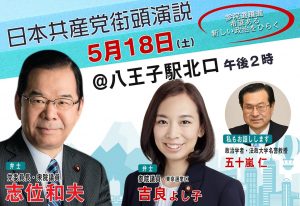 明日、八王子駅北口、日本共産党街頭演説会です。