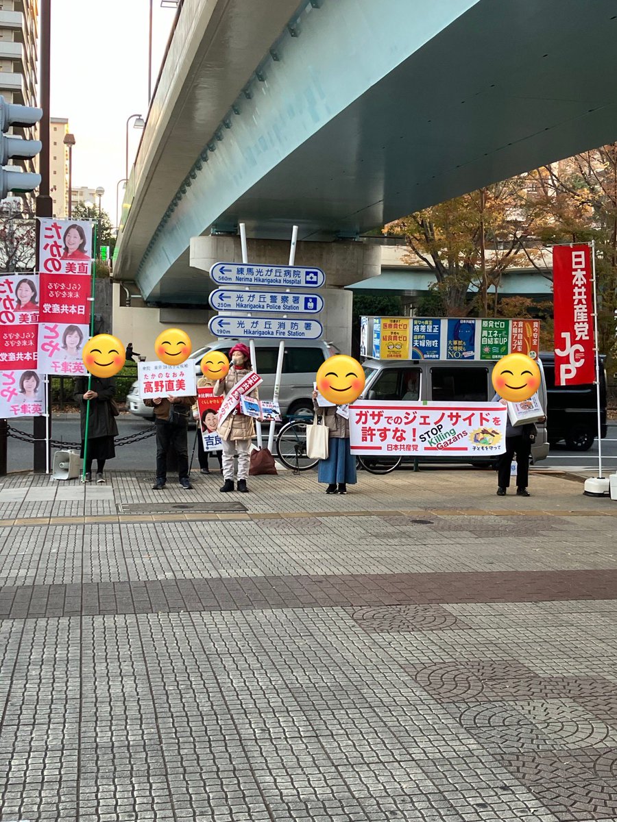 12月2日光が丘で地域の皆さんとガザに平和をの訴え!「人道的休戦決議」棄権、核兵器禁止条約会議不参加、オスプレイ墜落に対しても米国に言えない政府ではなく、世界に平和を訴える政府にしていきましょう!