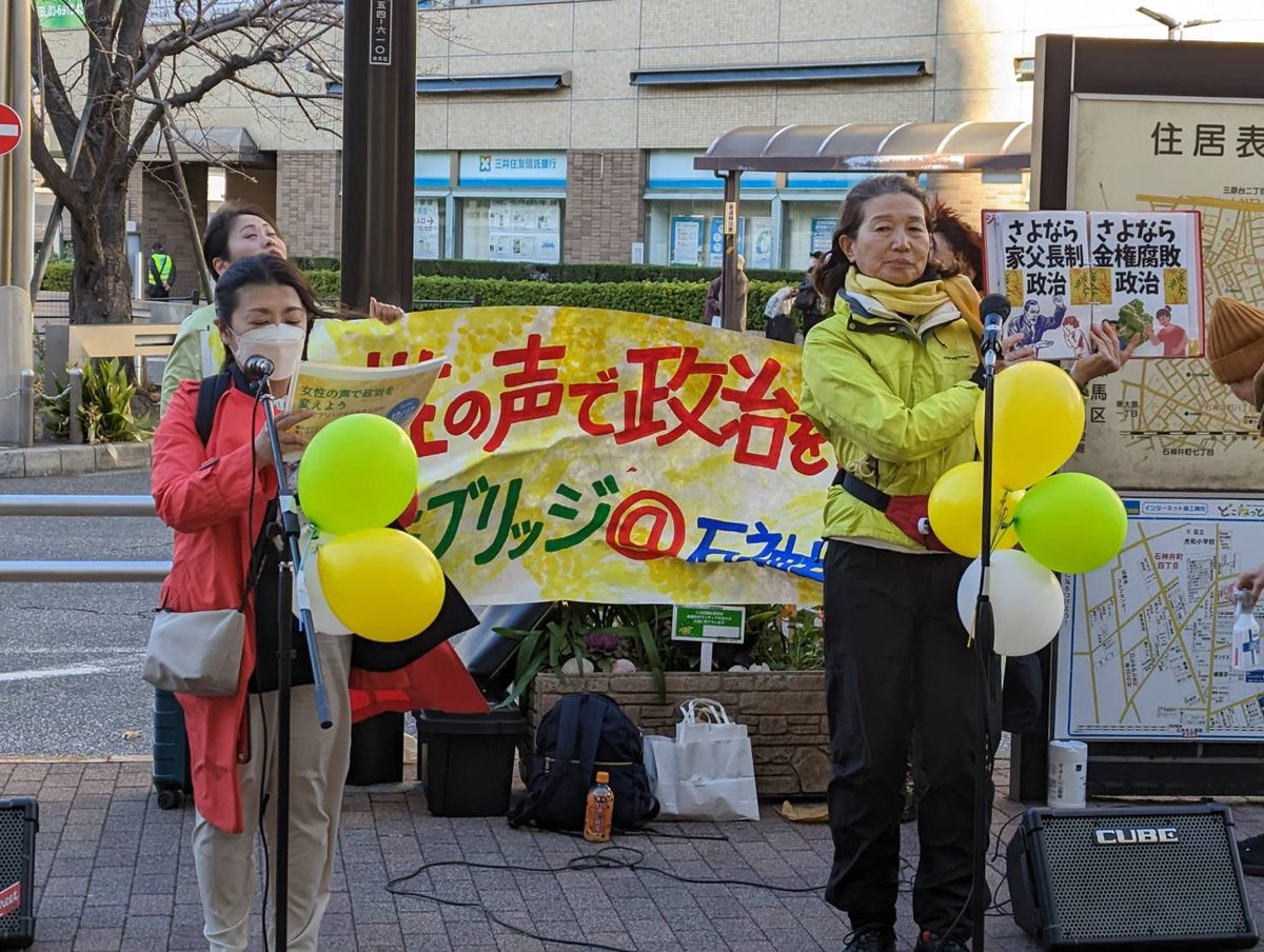 17日午前は共産党女性後援会で街頭宣伝、ジェンダー平等の訴え!午後は石神井公園駅で「フェミブリッヂ@ねりま」女性の声で政治を変えよう!さよなら家父長制政治、さよなら金権不敗政治!