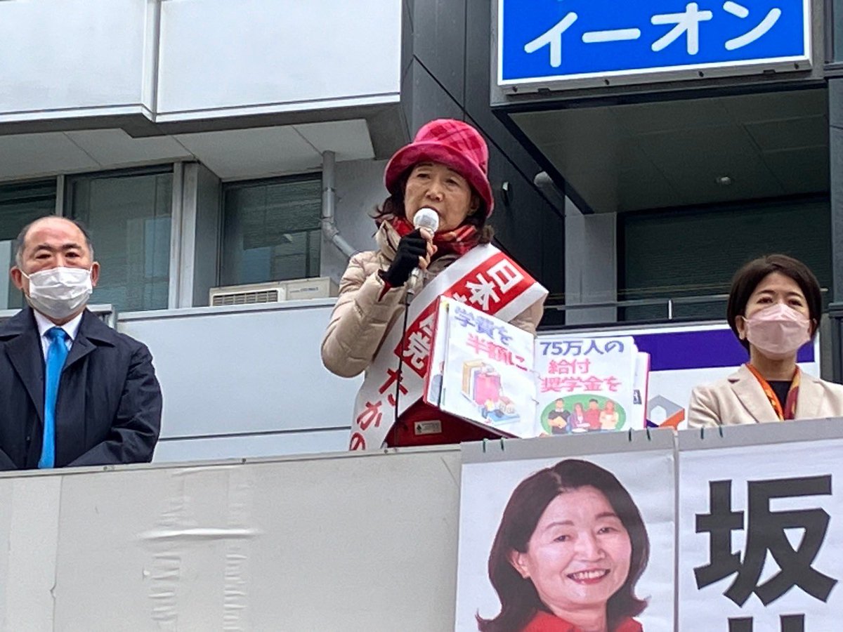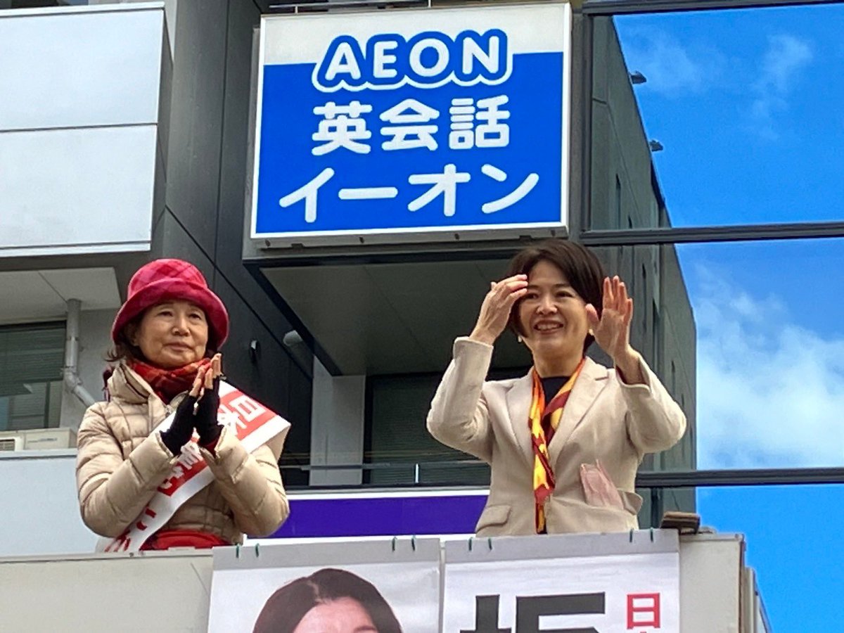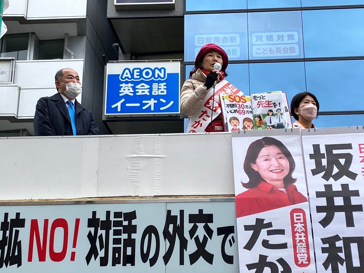 2日練馬駅、山添拓議員は国会対応で来られず比例代表坂井和歌子さんと一緒に「自民党政治を終わらせよう」宣伝!教育保育学費無償、非正規雇用なくそうの訴え!