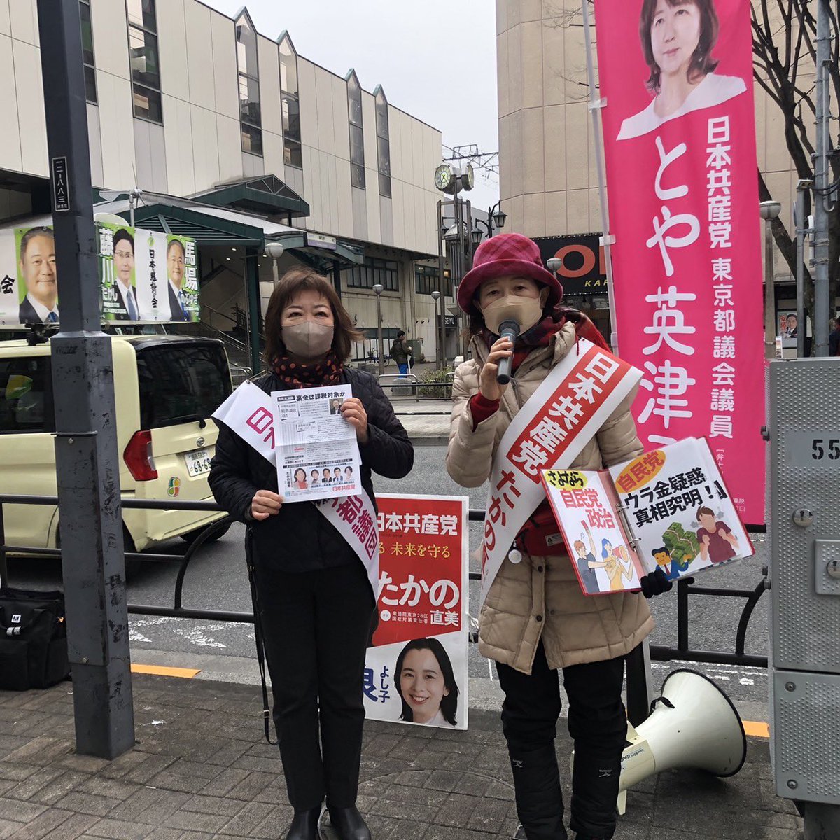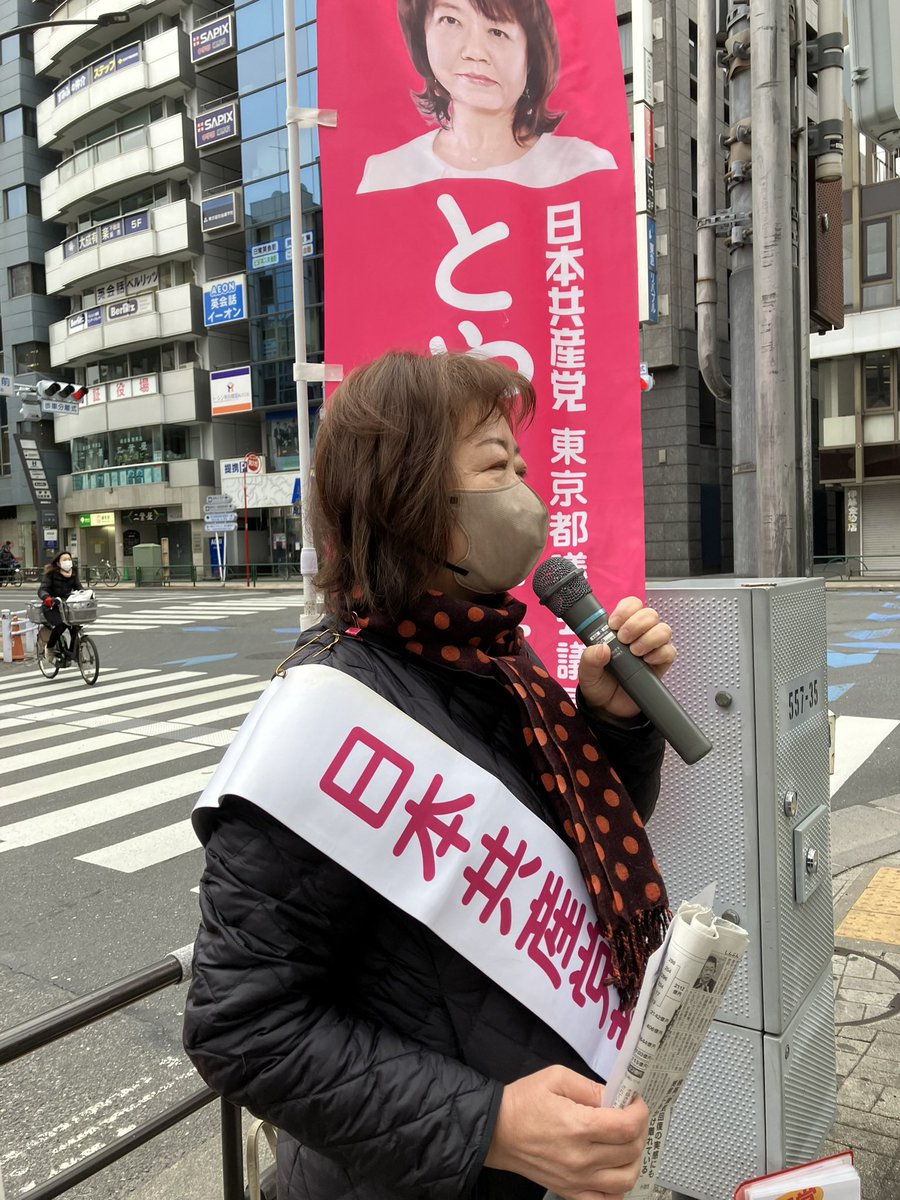 5日朝はとや都議と地域の皆さんと練馬駅南口で定例宣伝。3月に入ったのに底冷え!裏金の追徴課税額ビラお渡し とや都議は「経済界ファースト」都政STOPの呼びかけ!
