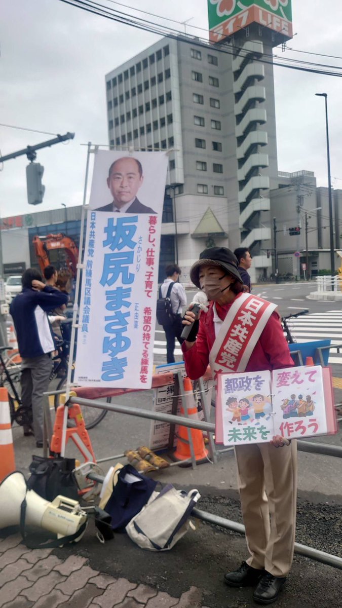 3日朝平和台で坂尻前区議と宣伝活動!都政を変えて未来を作ろう!力合わせて蓮舫都知事を押し上げ生活変えて行きましょう。自民党裏金政治もストップを!