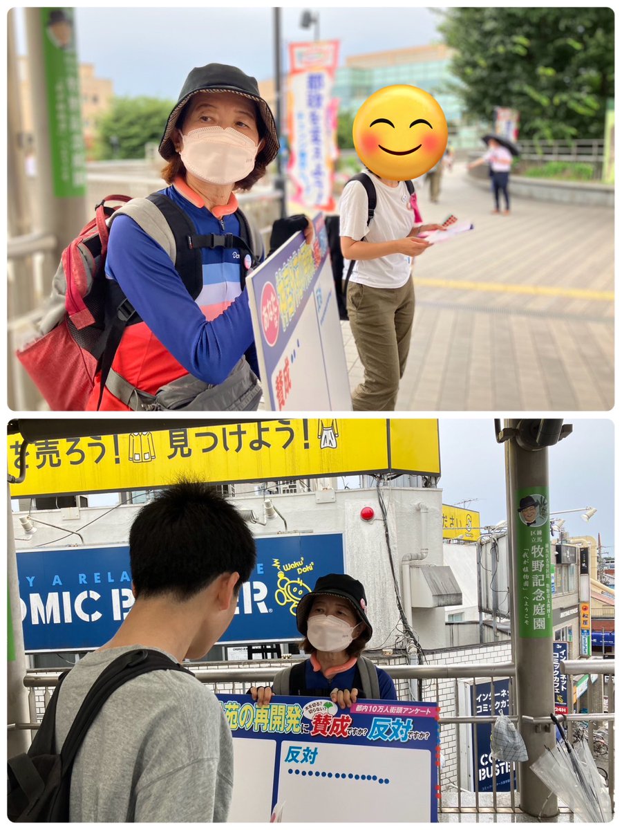 私にとっては大泉学園駅は初めての活動!小松、有馬、やくし区議、坂尻前区議、チェンジ東京・ねりまの皆さんとビラ配布シールアンケート!