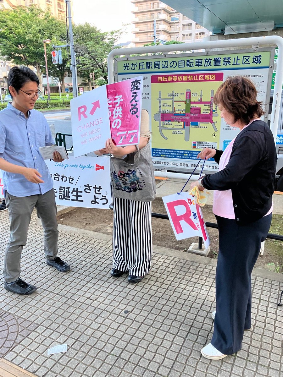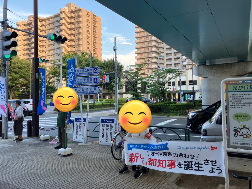 3日夕刻 光が丘島田区議 地域の皆さんとスタンディング。今日もシール投票。外苑の森のことを知らなかった若者が「それは大変」と投票。「とんでもない」とシール板に近づき投票の方も!