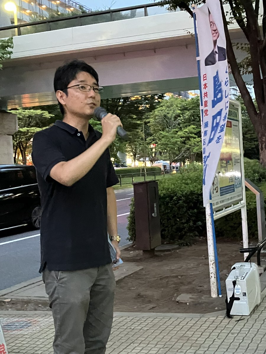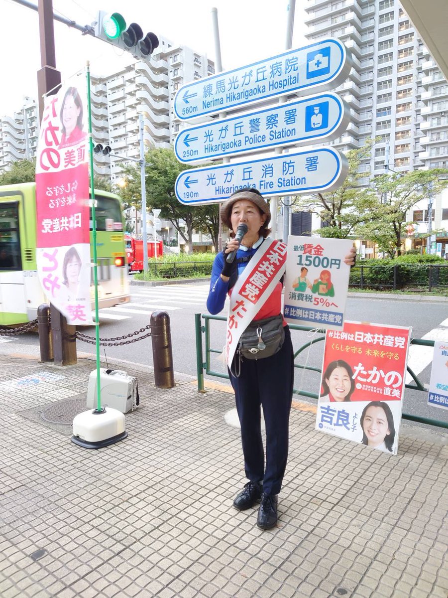 21日光が丘で島田区議地域の皆さんと夕方宣伝。#時短と賃上げセットでしょう/#自由時間拡大推進法