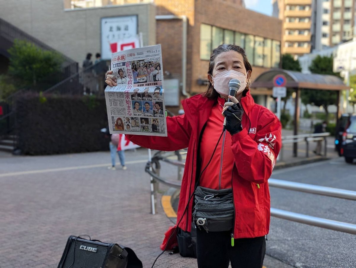 4日午後石神井公園駅でとや都議島田区議地域の皆さんと「しんぶん赤旗」宣伝行動。中学生や若い女性 バスに並ぶ女性はこちらまで受け取りに来てくれました。1時間で75部の手渡し!「赤旗」「裏金」は大きく広まり政治の流れを変えています!