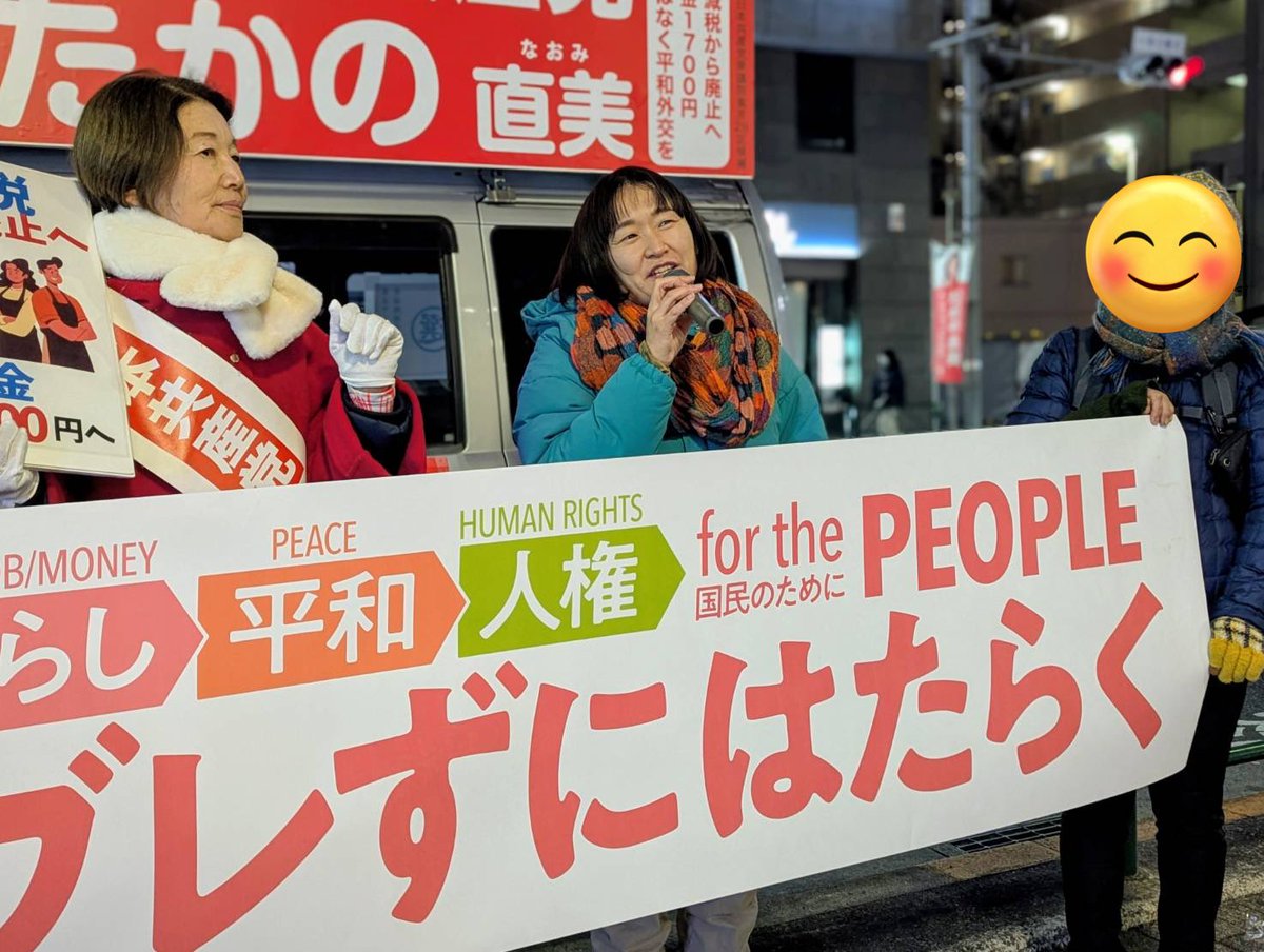 吉田健一さん、高口ようこ練馬区議に応援をいただきありがとうございます。寒い中多くの皆さんに訴えを届けました。