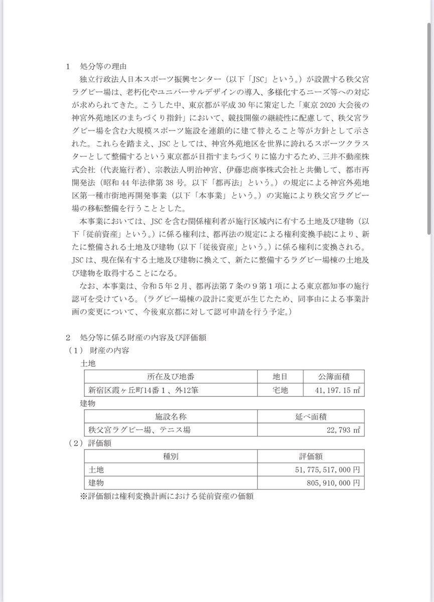 RT @kirayoshiko: 一部報道もあるように、秩父宮ラグビー場の財産処分について、あまりにも早すぎる大臣認可が行われました。