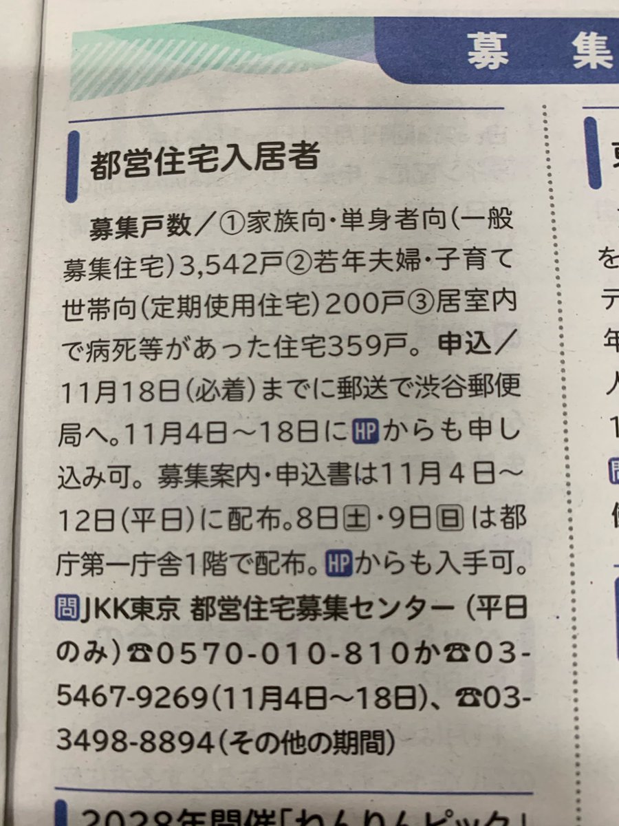 都営住宅は #毎月募集 もありますのでお問い合わせ下さい