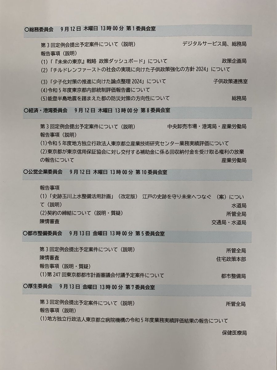 #都議会 は9月18日から第3回定例会が始まります。