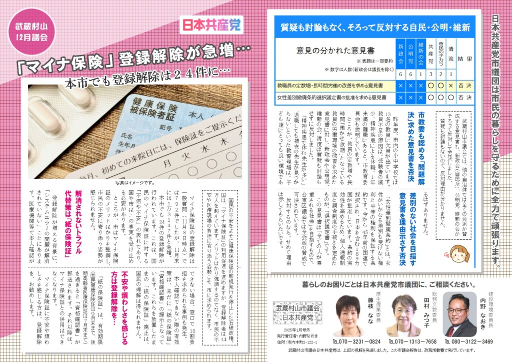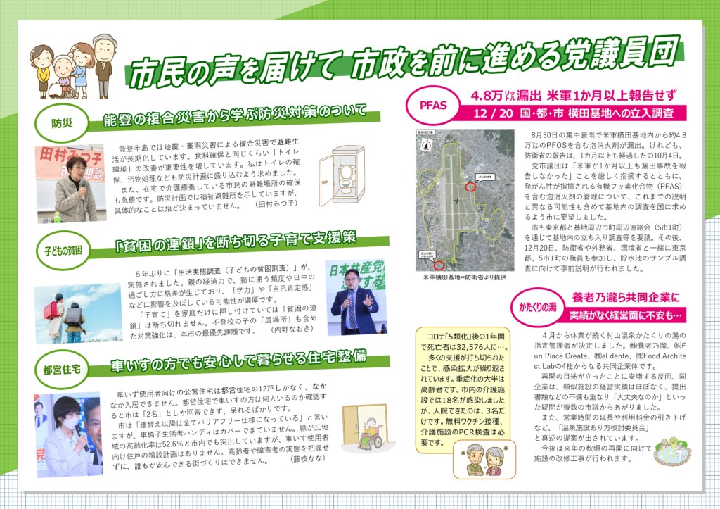 ▶ウラ面の概要…(2面)3市議のコラム(3面)PFAS、かたくりの湯、新型コロナ
