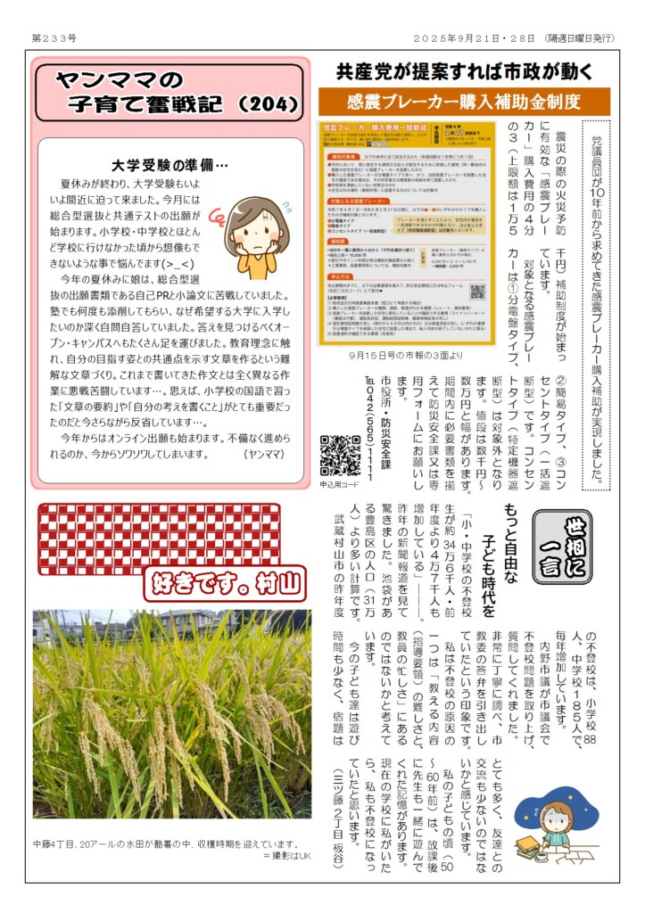 ▶2面の概要(感震ブレーカー補助・コラム・写真投稿)