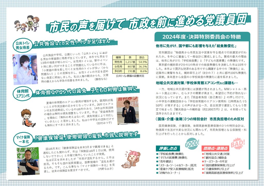 ▶ウラ面の概要…(2面)3市議の一般質問コラム、(3面)決算委員会まとめ