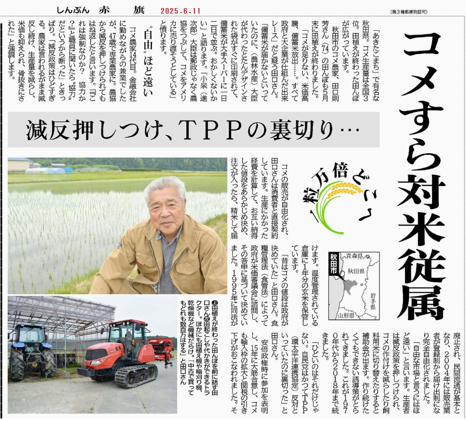 RT @pon_ta21: 日本のお米を守れ!(今日の #しんぶん赤旗 より)
