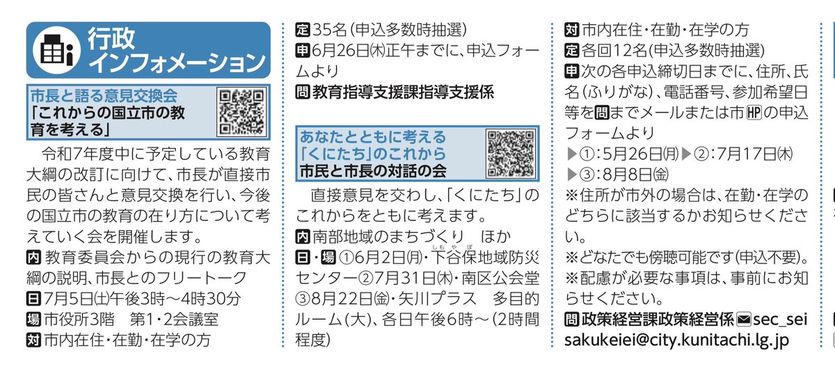 市長が常々訴えていた「市民との対話」、私たち共産党市議団も”今年の前半には具体的な形を示して実施を”と求めていましたが、教育とまちづくりについての実施情報が掲載されています。ぜひご参加を!