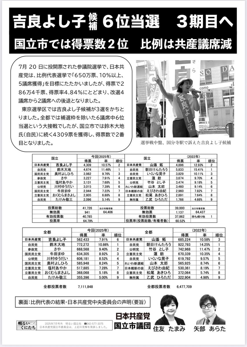 RT @yabe_arata: 街頭での配布やしんぶん赤旗への折り込みをさせていただいている選挙報告のチラシです。