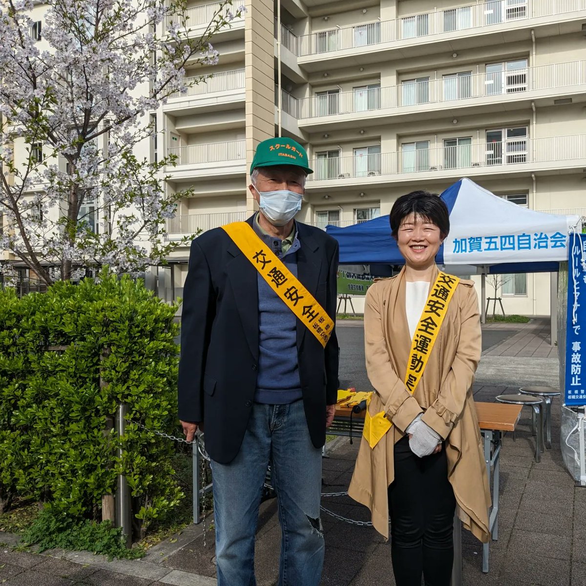 今朝は、加賀五四自治会やみどり会のみなさんとともに春の交通安全活動に参加させていただきました。