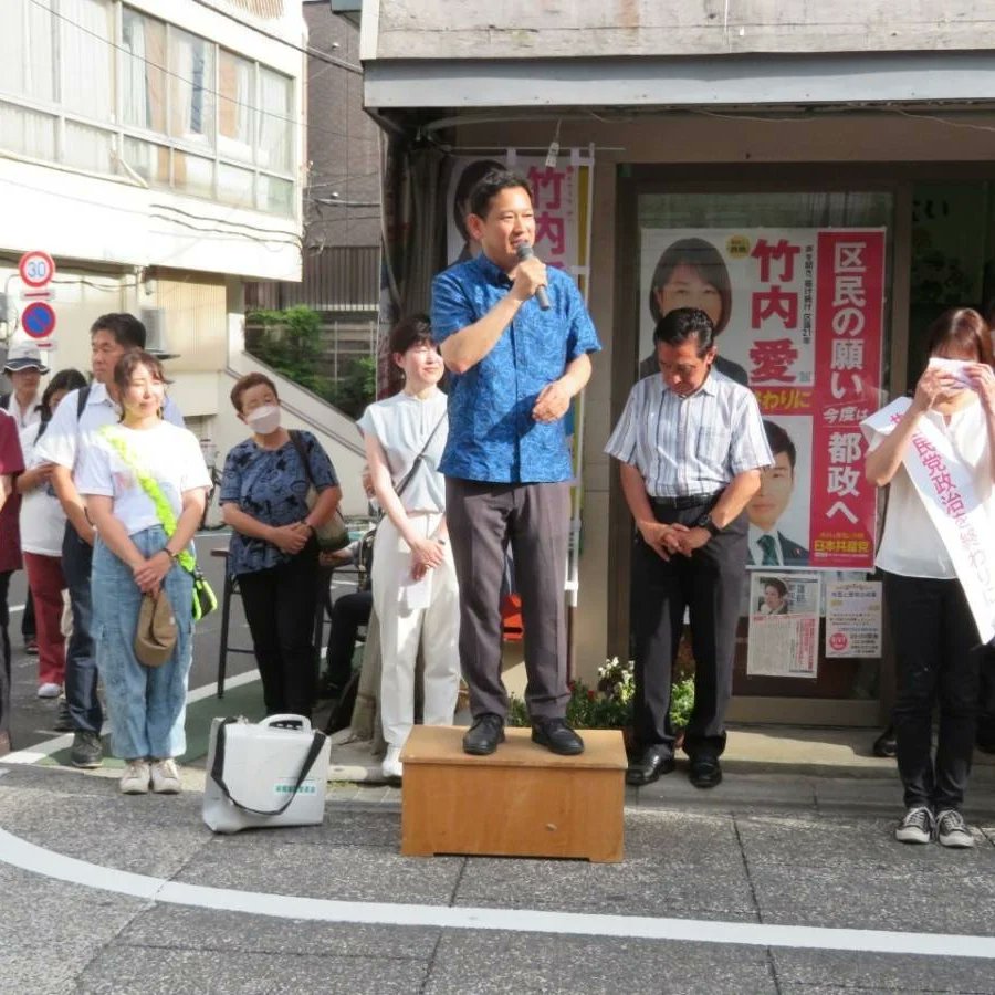 #日本共産党 #宮本徹 衆院議員、元自民党都議の稲葉氏が激励の挨拶に!#五十嵐やす子 区議からメッセージが寄せられ、代読させていただきました。今度は竹内さんを都政に!