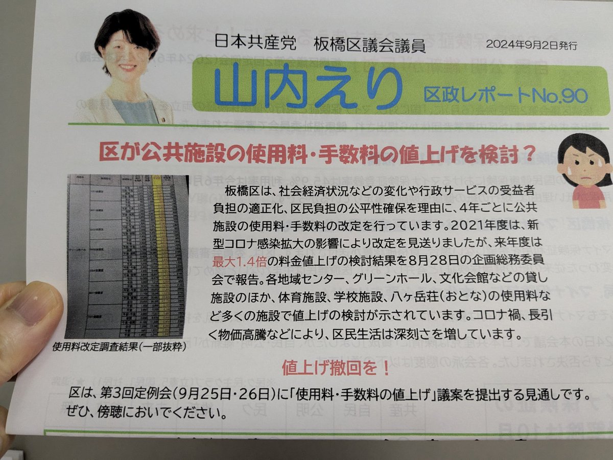 #板橋区議会 9月議会のお知らせなど含めた新しい区政レポートNo.90をお配りしました。