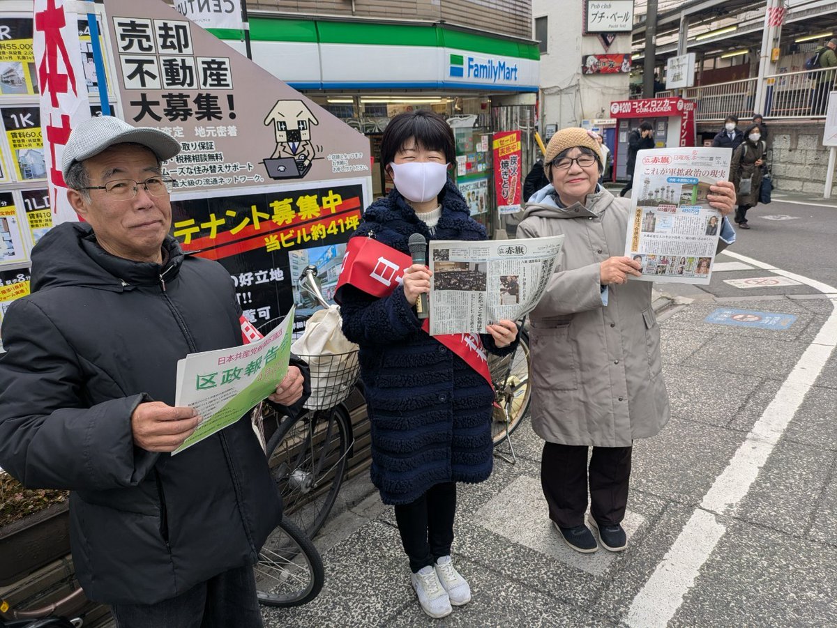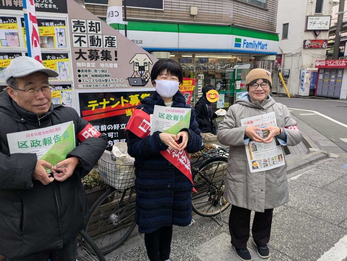 4/12(土)に行う #共産党板橋区議団 主催の区政報告会のご案内をお配りしました。区議団全員揃っての開催となります。