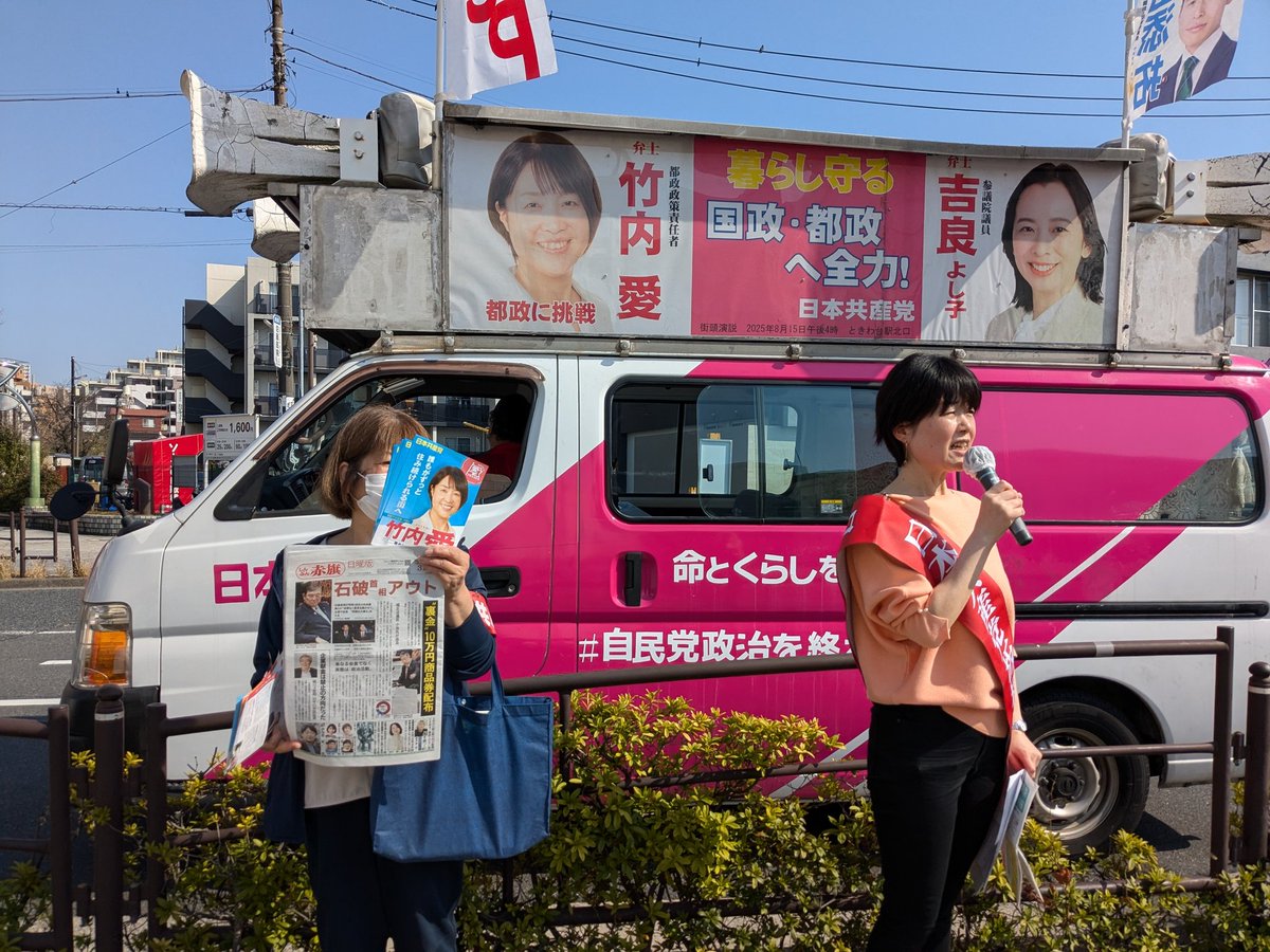#竹内愛 都議予定候補のリーフレットは受け取り良く、手を振ってくださる方も多く、励まされました😊。