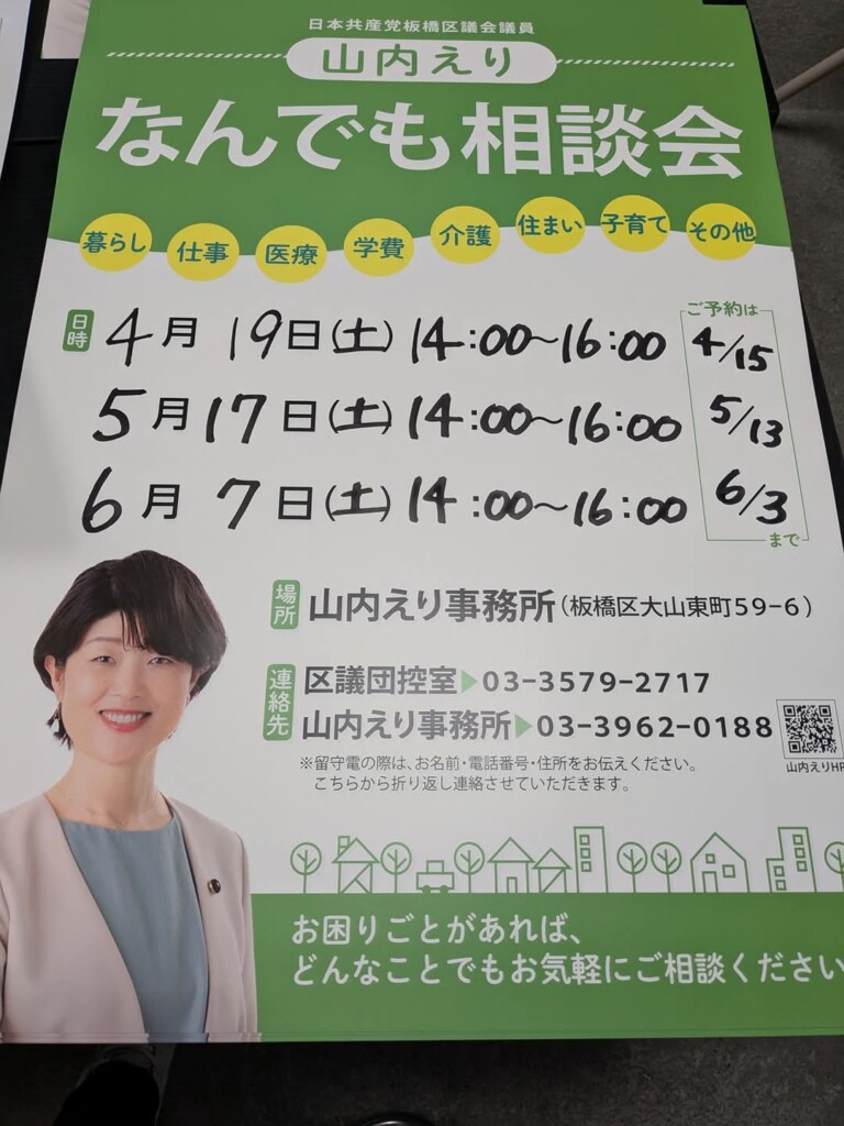 いずれも山内えり事務所(板橋区大山東町59-6)で行います。
