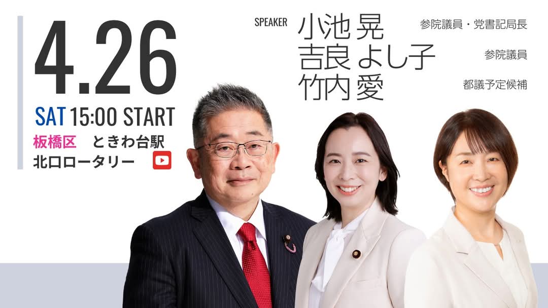 ときわ台駅北口にて日本共産党の街頭演説を行います。