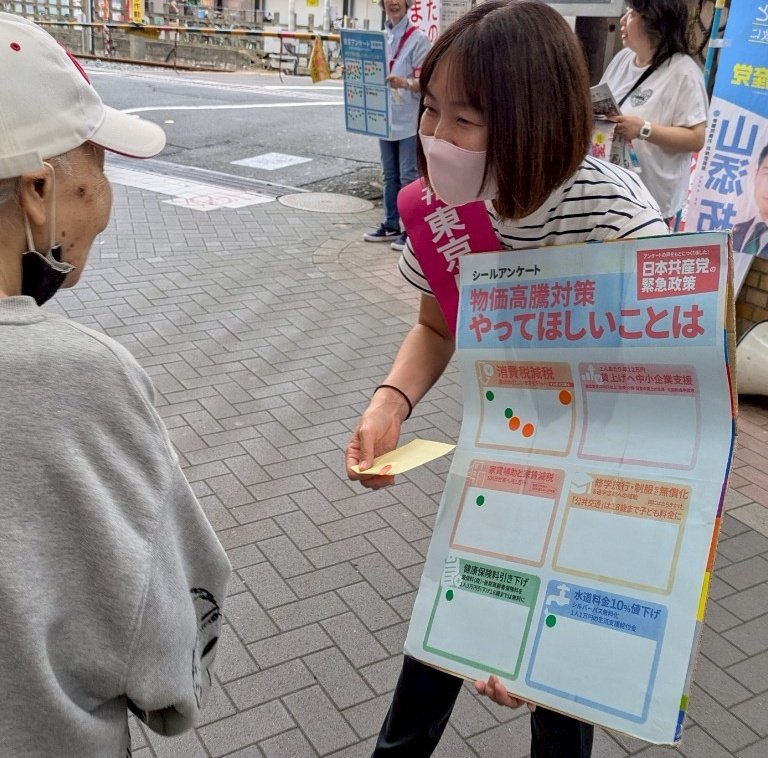シール投票では「水道基本料金無償化はありがたい。共産党が議会で繰り返し提案してくれたんですね」「消費税は減税してほしい」など物価高に対する施策を求める声が多かったです。