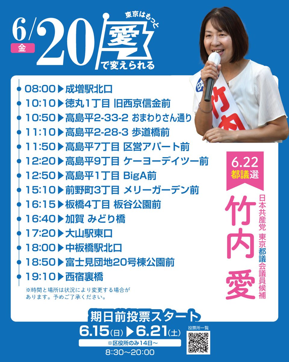 6/20(金)の #竹内愛 候補の日程です✨。