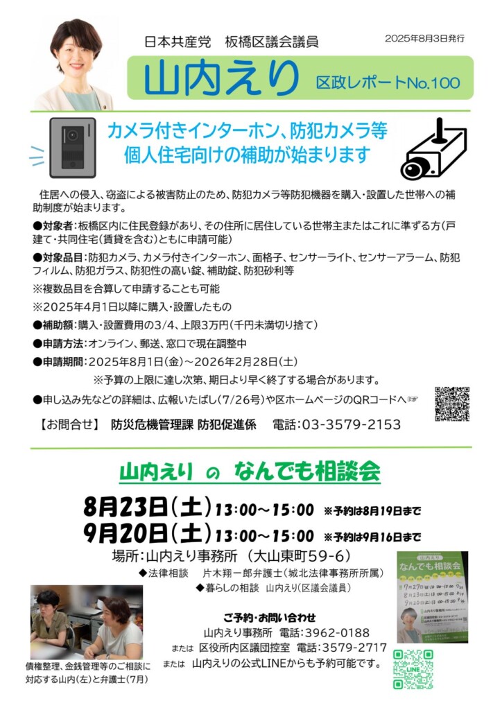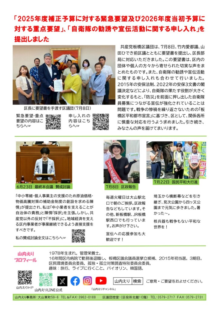 区政レポートNo.105を発行しました! 〇板橋駅西口駅前広場 住民の待ったに応えよ! 〇山内えりのなんでも相談会 ・11月15日(土)13:30~ ・12月20日(土)13:00~ 〇地域経済を下支えする中小企業へ直 ...