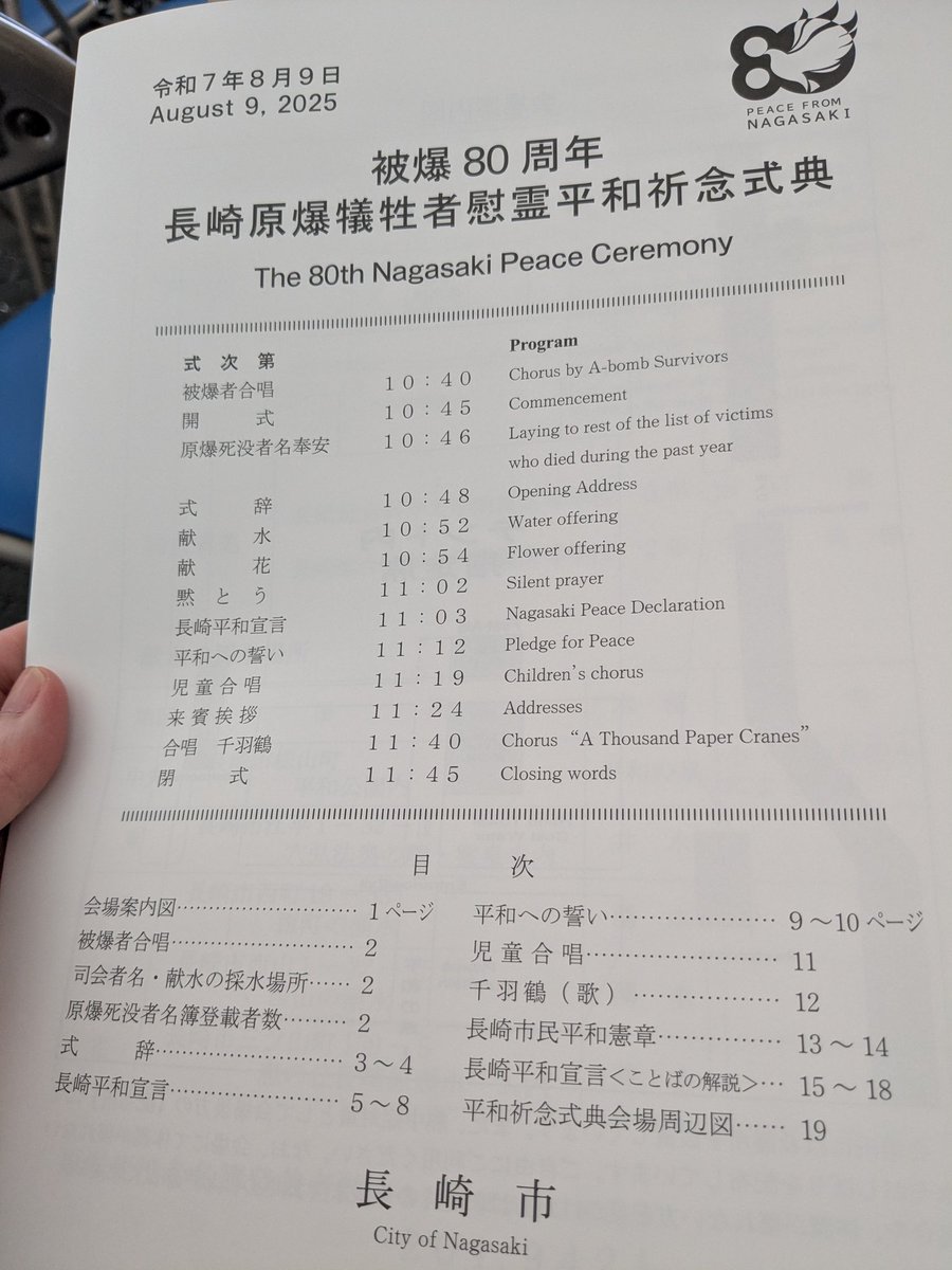 始まる直前まで大雨でどうなるか心配でしたが長崎原爆犠牲者慰霊平和祈念式典が行われ、私も参列しました。