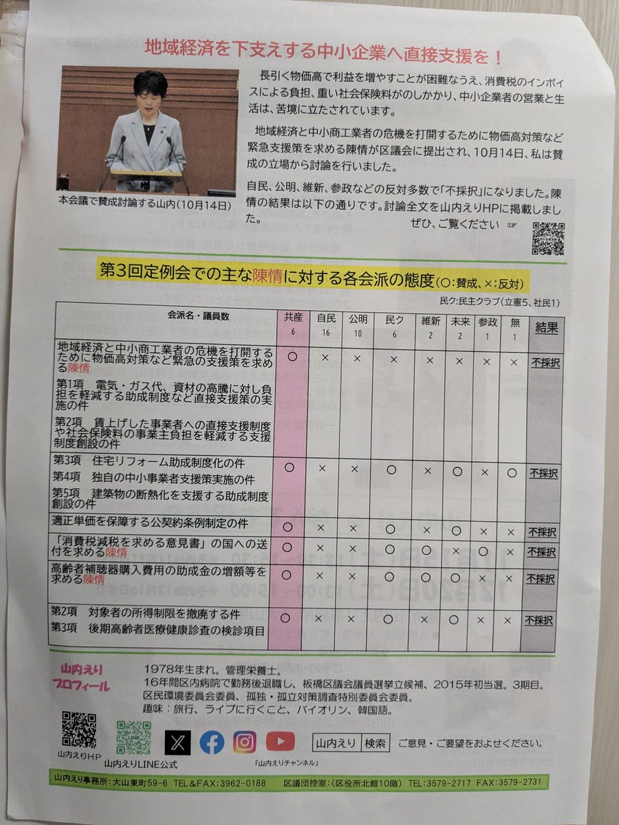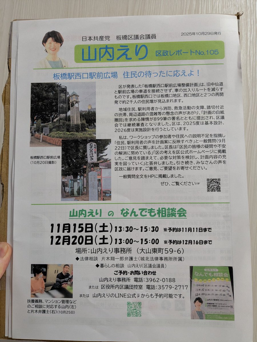 区政レポートと、#しんぶん赤旗 日曜版(11/2号)の見本紙も配布。
