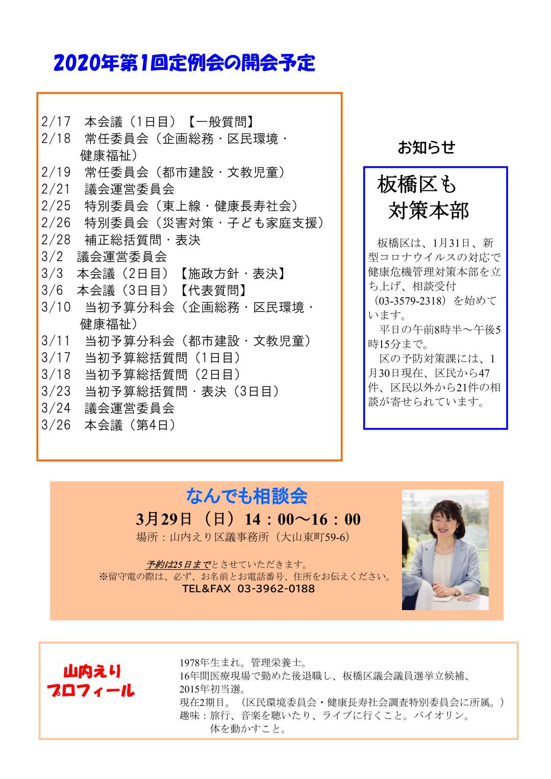 区政レポートNo.105を発行しました! 〇板橋駅西口駅前広場 住民の待ったに応えよ! 〇山内えりのなんでも相談会 ・11月15日(土)13:30~ ・12月20日(土)13:00~ 〇地域経済を下支えする中小企業へ直 ...