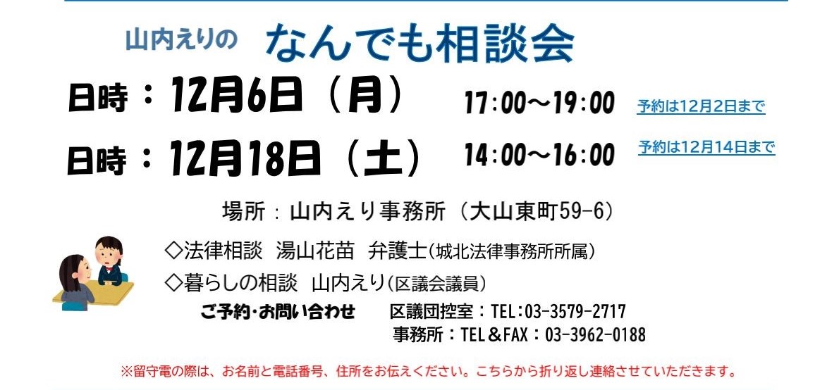 区政レポートNo.105を発行しました! 〇板橋駅西口駅前広場 住民の待ったに応えよ! 〇山内えりのなんでも相談会 ・11月15日(土)13:30~ ・12月20日(土)13:00~ 〇地域経済を下支えする中小企業へ直 ...
