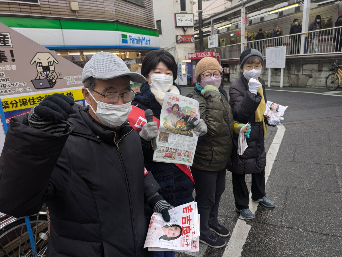 #しんぶん赤旗 日曜版の最新号見本紙や #吉良よし子 参院議員のリーフレットをお配りしました。