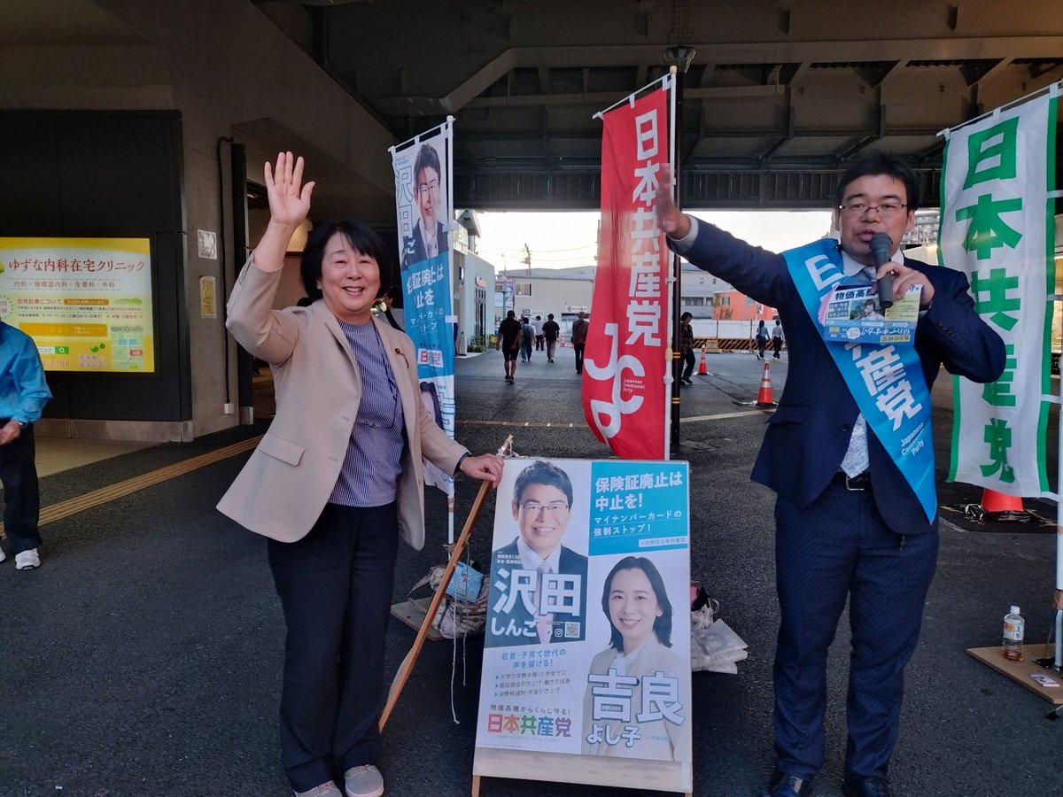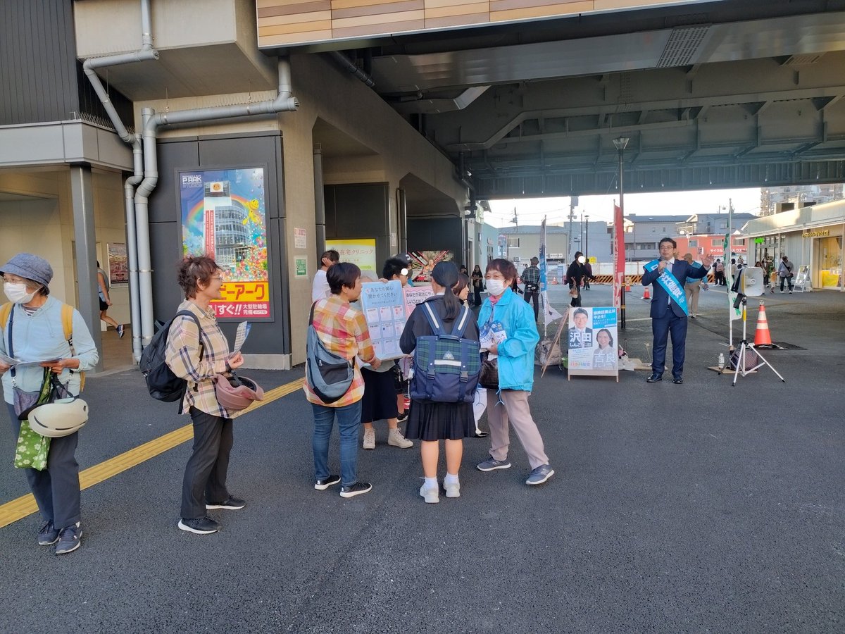竹ノ塚東口夕方宣伝 東京13区予定候補沢田しんごさんの「自民党政治を大もとからChange!」の訴えが響きました。