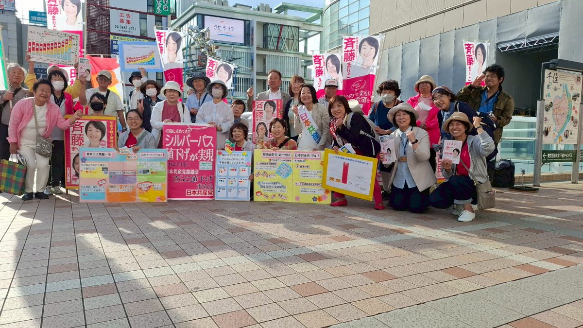 斉藤まりこ都議と区議団と後援会のみなさんと。
