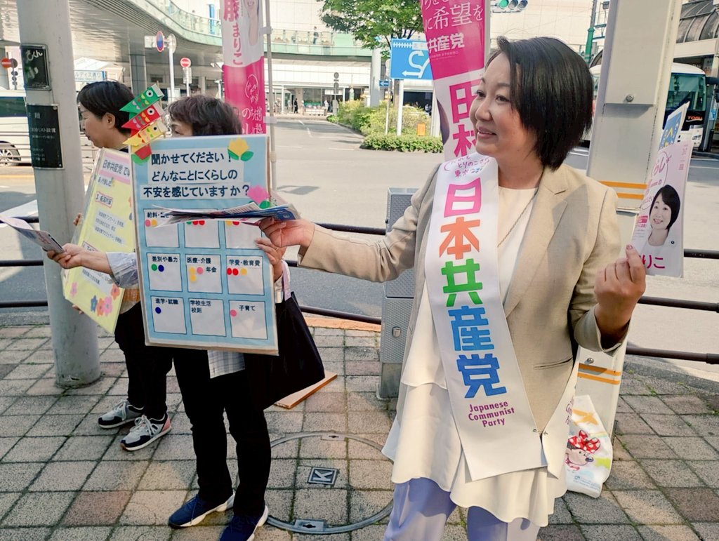 物価高騰対策、教育費の軽減の訴えにたくさん方が斉藤まりこ都議のリーフレットを受け取ってくださいました。